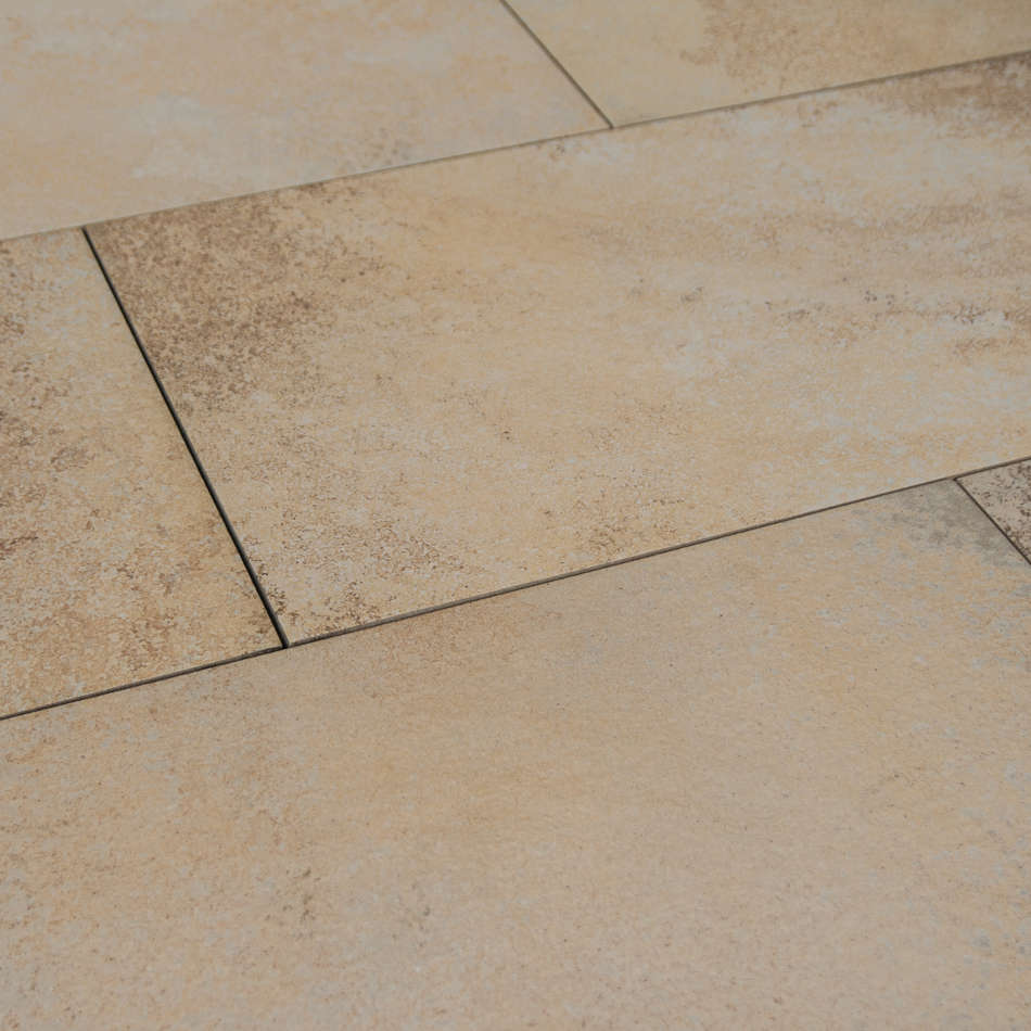 Bei der Verlegung von SOMMERWIND Feinsteinzeug Terrassenplatten empfehlen wir eine Durchmischung der Platten aus verschiedenen Paketen bzw. Paletten, um der zu belegenden Gesamtfläche ein gleichmäßiges Erscheinungsbild zu verleihen. Keine paketweise Verlegung!